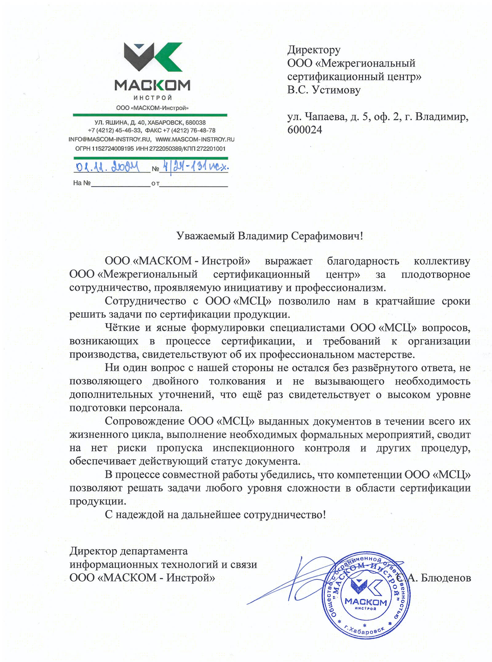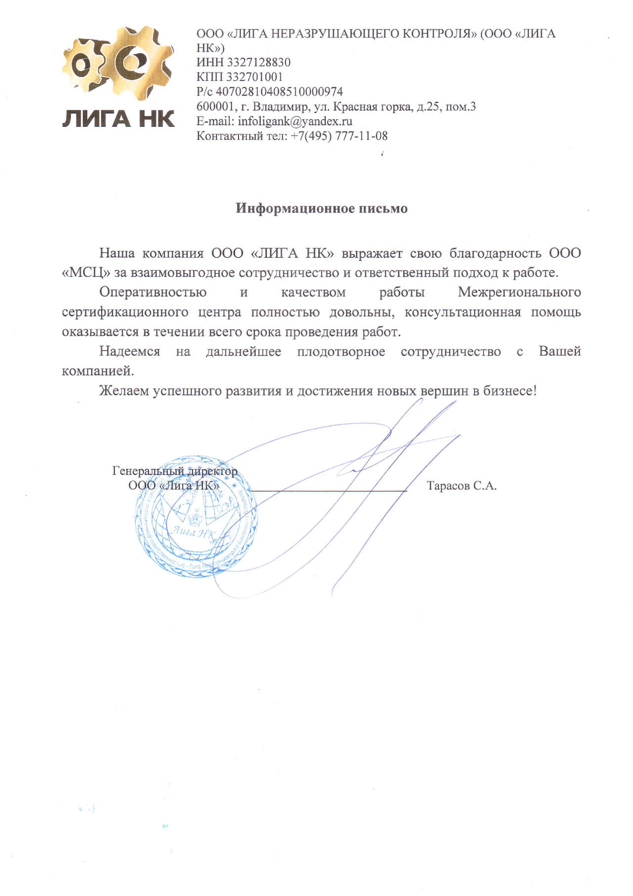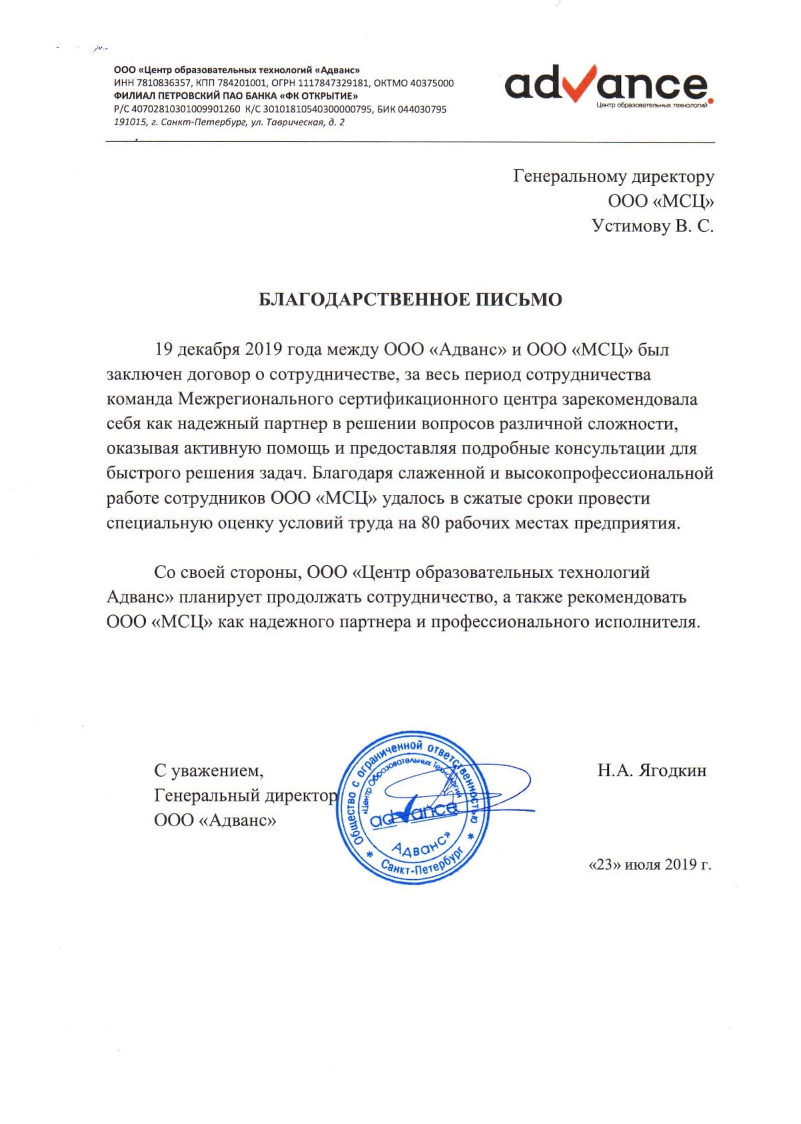 Отзывы и благодарственные письма от клиентов ООО "МСЦ"