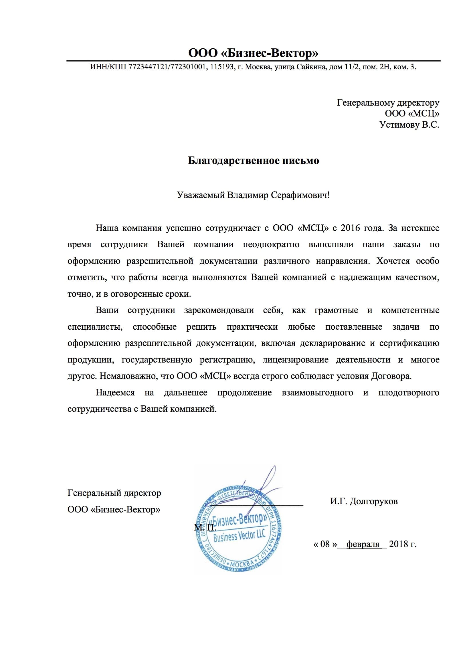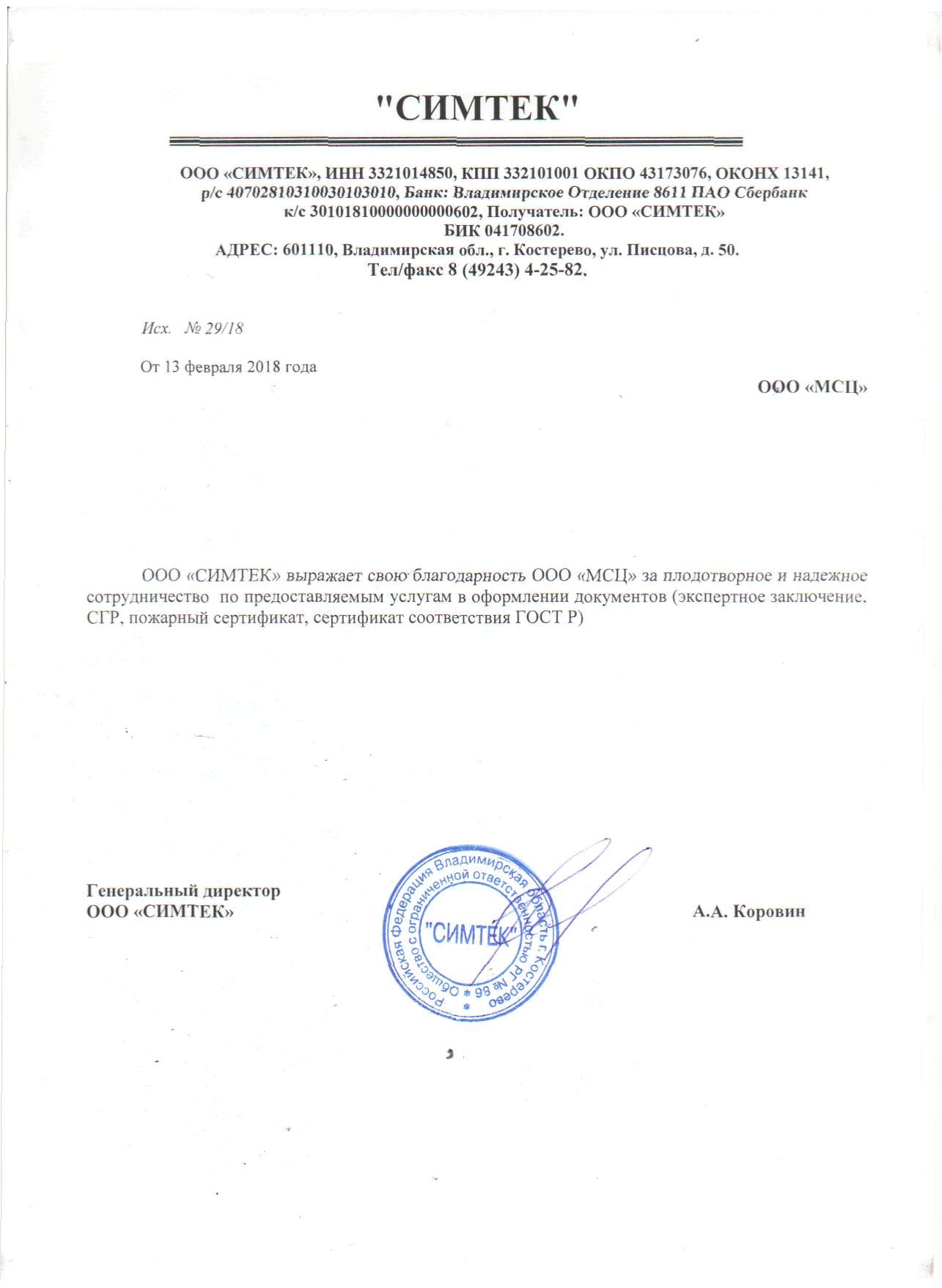 Отзывы и благодарственные письма от клиентов ООО "МСЦ"