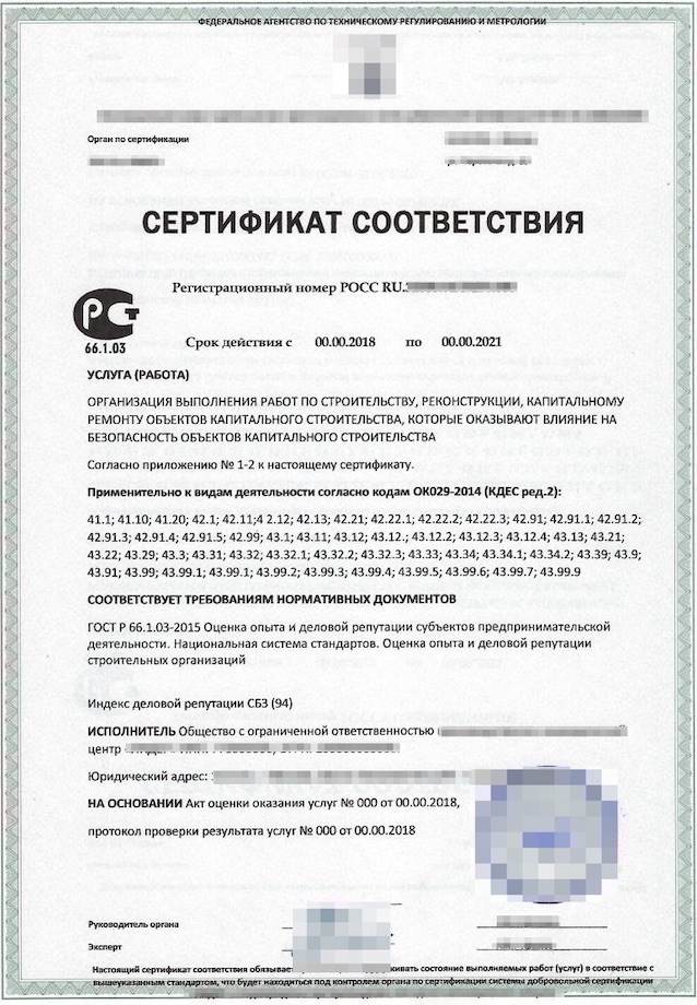 • ГОСТ Р 66.1.03-2016 «Оценка опыта и деловой репутации строительных организаций»;