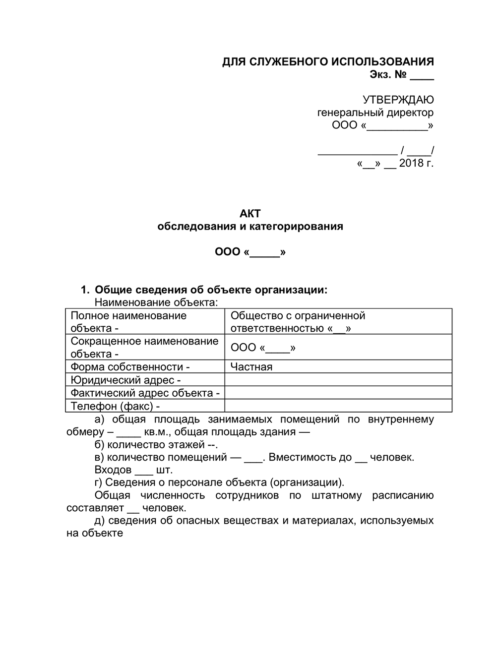 Далее руководитель предприятия своим приказом создает комиссию по обследованию помещений/территорий, куда входят представители уполномоченных органов, правообладатели объекта, работники, эксперты, имеющие полномочия проводить экспертизу безопасности объекта.