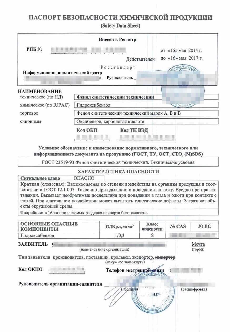 Паспорт безопасности химического вещества – необходимый нормативно-технический документ, без которого невозможно сертифицировать продукт, получить лицензию на производство и иную разрешительную документацию для легитимной деятельности.