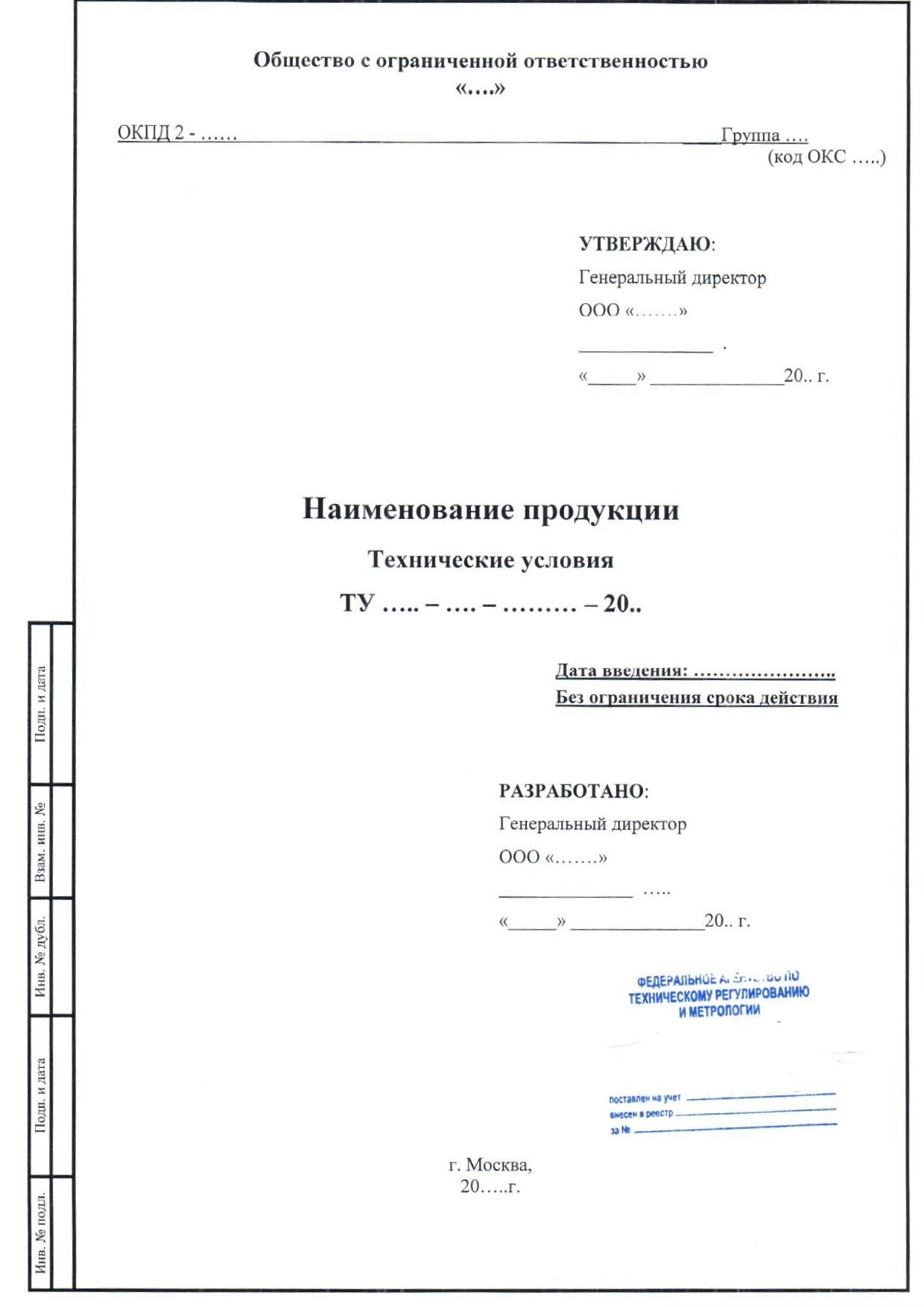 - утверждение ТУ подписью заказчика на «титуле» под грифом «утверждаю».