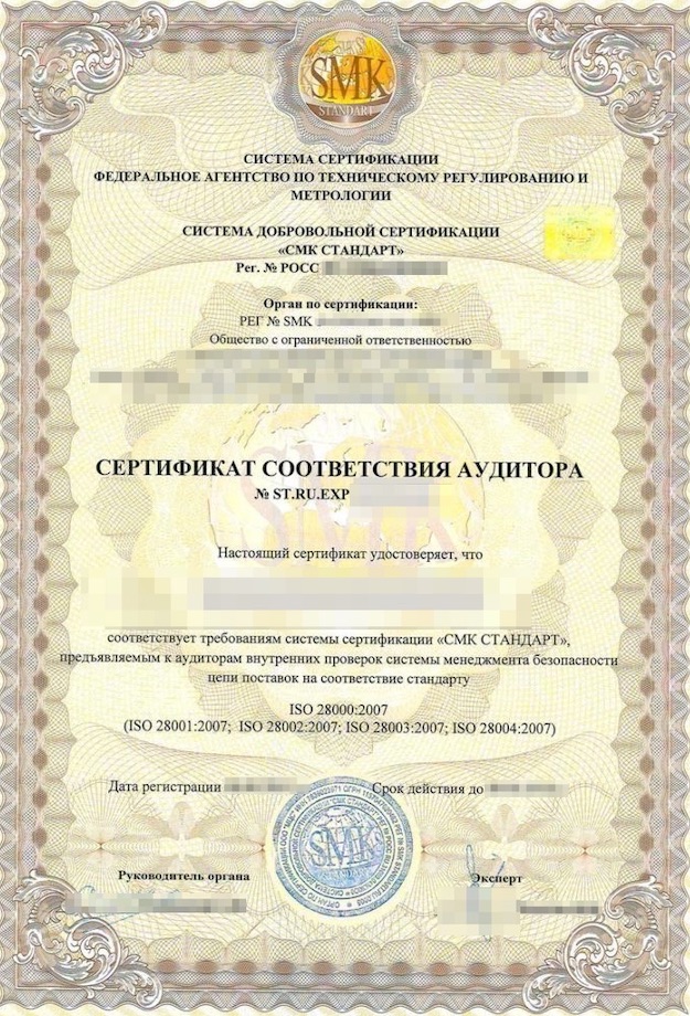 Сертификат ГОСТ Р ИСО 28000. Системы менеджмента безопасности цепи поставок