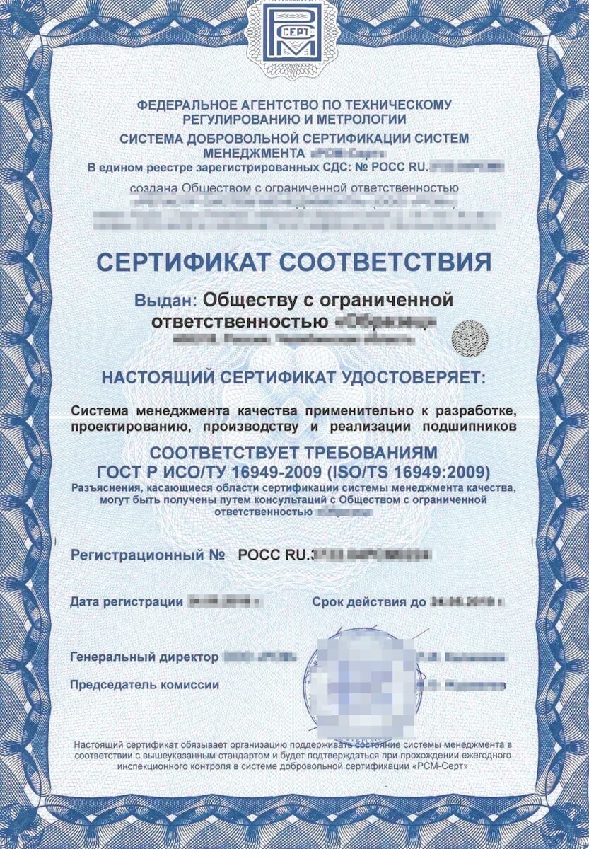 Сертификат ГОСТ Р ИСО/ТУ 16949-2009