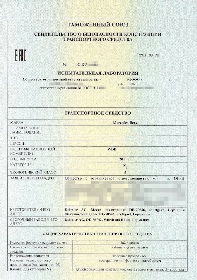 Свидетельство о безопасности конструкции транспортного средства (СБКТС)
